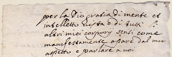 Poi, il testatore si presenta specificando il suo cognome, la sua professione, il suo domicilio e dichiara essere sano di mente, condizione indispensabile per la convalida del testamento. |