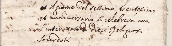 | Nel XVIIo secolo, la chiesa essendo sempre più riservata alle élite a causa dei problemi d'insalubrità causati dall'apertura delle fosse, il cimitero diventa il luogo di sepoltura abituale, è dunque inutile precisare nel suo testamento che si vuole essere sepolto al cimitero. Però quelli che vuole "evitare il cimitero" (nobili, religiosi.. con l'autorizzazione delle autorità religiose) scelgono la loro sepoltura nella chiesa, si tratta d'una volontà di distinguersi dalle categorie più popolari, ma anche affermare il suo rango sociale. Per alcuni, una sepoltura nella chiesa è anche un mezzo per beneficiare più efficacemente dell'intercessione dei santi, delle preghiere della famiglia e dei fedeli della parrocchia. Dopo la scelta del luogo di sepoltura, i testatori si preoccupano di organizzare i loro funerali, qui Giulio Ceruetti sarà inumato l'indomani della sua morte, la preoccupazione di conservare il corpo durante ventiquattro ore (a volte quarantotto) prima dell'inumazione è legata alla paura di essere seppellito vivente. |